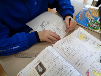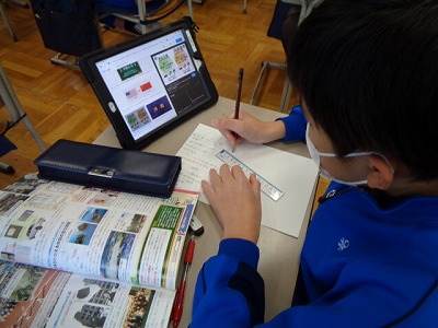 「アジア・太平洋に広がる戦争」「新しい日本へのあゆみ」の2つの単元から一つ選んで、その中で自分が関心を持った内容を新聞にまとめています。