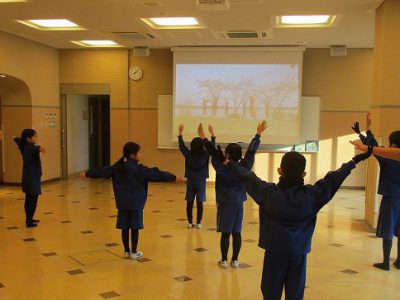 英語朝体操の金曜日です。