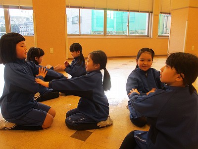 その後は「アルプス一万尺の英語手遊び」や、
