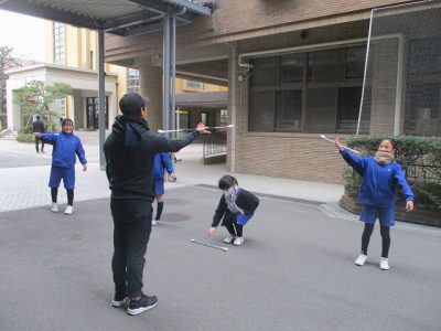 本当に寒い中、めいっぱい走るサッカー教室。華麗に回すバトントワーリング教室。