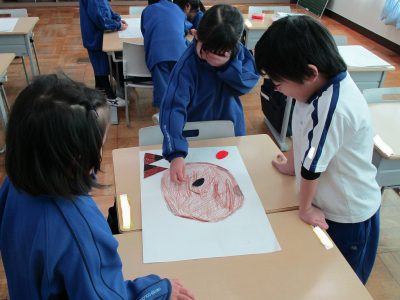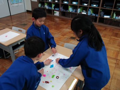 今日の生活科の時間は、はじめに「おはじき」遊びをしました。