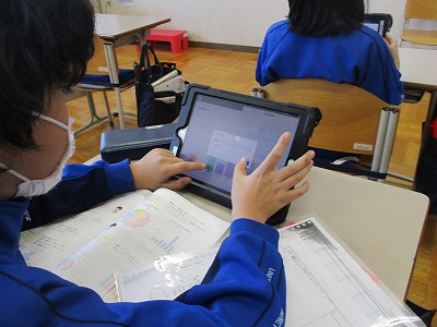 今日は、自分が関心のある事柄について、ロイロノートを使ってアンケートを作り、みんなに応えてもらい、グラフに表す学習をしました。