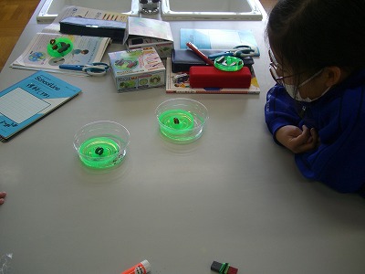 今日の理科は「N極とS極」の性質について復習した後に、新しい実験をしました。
