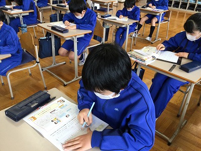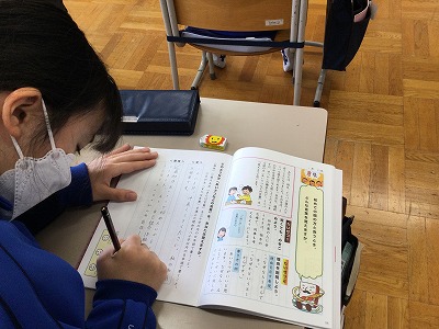 前の時間に学習していた漢字や熟語が出題されていて、「勉強したことが出てる!」と、手応えを感じたようです。
