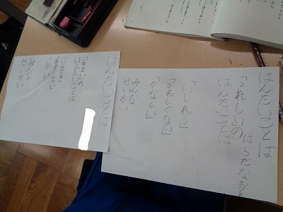 今日は、「ねこのこ」や「はんたいのことば」などの詩を音読し、その様子を思い浮かべる活動を行いました。それから、お気に入りの詩を選び、丁寧に視写をしました。
