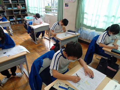 3時間目の国語は「ウナギのなぞを追って」のテストに取り組みました。文の中心を見つける事を意識します。学んだことを生かして、真剣に取り組みました。