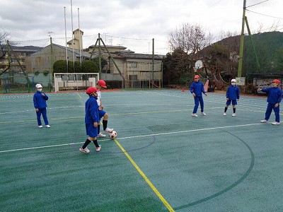 4時間目は、今週から取り組んでいるサッカーです。まずは、サッカーボールを使ってドリブル。その後、4チームに分かれてミニゲームを行いました。2学期に取り組んだポートボールの作戦を参考に、あいている所を見つけてパスをもらうことや、前へ前へとボールを送ることなどを意識しました。