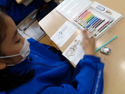 一校時は「年賀状大賞コンクール」に出品するための作品作りに取り組みました。