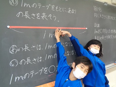 「○個に分けた○つ分」のように、1mを何等分したかを考え、分数の表し方を身につけました。