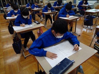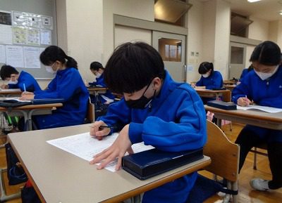 週末の漢字大会に向けて、朝根っこタイムに練習テストを実施。
