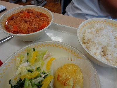 12/7火【Today’s lunch (Chili-con-carne・Sweet Potato Cake)】