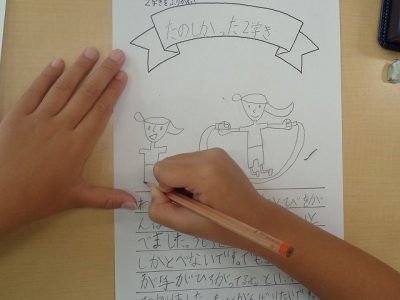 2学期の学校生活を振り返って、特に思い出に残っていることを絵と文章で表しました。