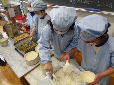当番さんが、テキパキと準備し、配膳を行っています。