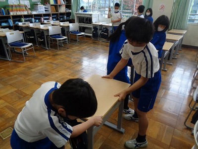 机運びは「先に机を運び、後から椅子を運ぶ」のような決まり事を決めて、素早く取り組んでいます。
