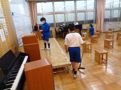 給食の後は、清掃活動です。