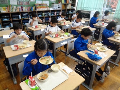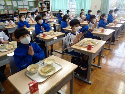いつも美味しい給食に感謝して、完食を目指しています。