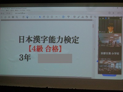 漢字検定で4級に合格した3年生の表彰がありました。