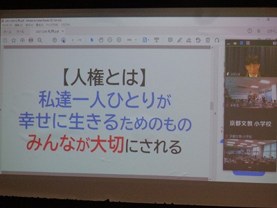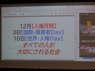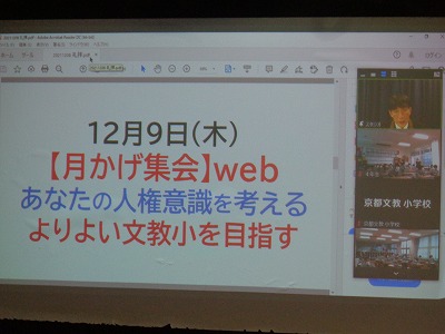 これまで各クラスが人権について考えてきました。今回もオンライン集会となりますが、みんなで「人権」と「自分にできること」を考え、より良い自分・より良い学校を目指します。