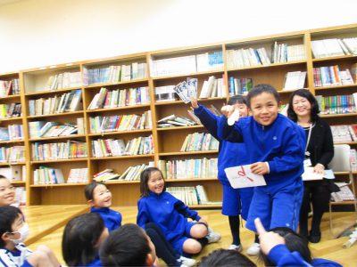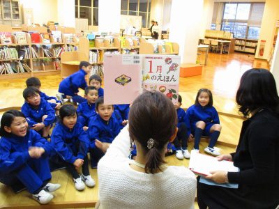 寒さを忘れるような温かいストーリーや、キラキラした銀箔の絵、クリスマスやお正月が楽しみになるお話に、子ども達は絵本をじっと見つめながら聞いていました。