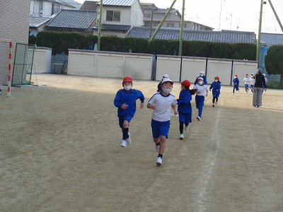 過度な運動にならないように、中・高グラウンドを一周走りました。