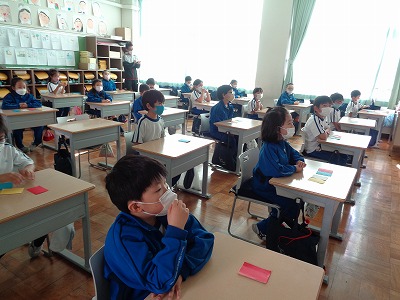 仲間に自分から声ををかけたり(ぽかぽか言葉)、仲間の話をしっかり聞いてあげること、他にも授業中での落ち着きについて挙げていました。学級代表がキャッチフレーズとその説明を堂々と発表していました。