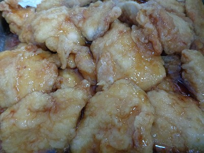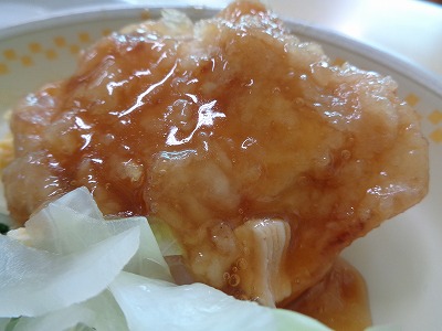 鶏の胸肉は、少しパサパサした食感がありますが、とろっとした"たれ"で食べやすくなります。