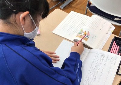 問題をよく読んで、考えている様子です。その計算になる理由を説明するということは、日々の授業でも大切にしている事ですが、毎日の練習の成果を活かして解いていました。