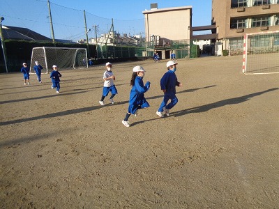 終わると、なわとびをして体を温めます。前とびが基本ですが、かけ足あやとびや、うしろとび、交差とびの練習をしている姿もありました。