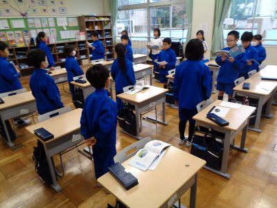 今日の「朝根っこタイム」は、音読を行いました。