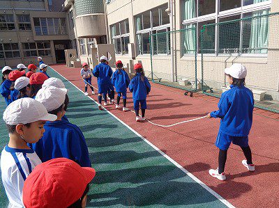 跳ぶ人も、縄を持つ人も、順番に交代しながら楽しく遊ぶことができました。