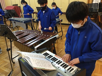 打楽器のリズムパートは、旋律にのって、軽いタッチで演奏することを心がけています。