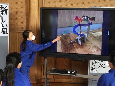 その作品を画面に映写し、図工の時間に書いた「鑑賞コメント」を手に、作品の解説を行います。