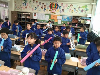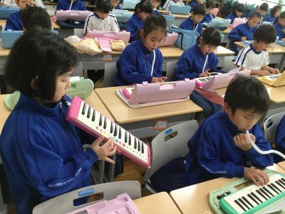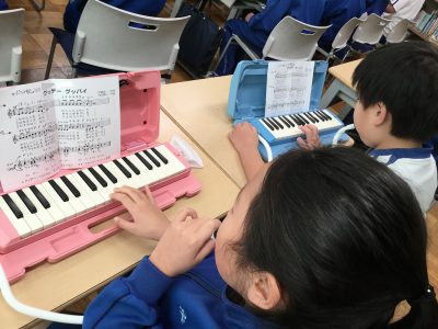 そこで、担任から提案したのが、“グッデイグッバイ”のフレーズを鍵盤ハーモニカで奏でることです。