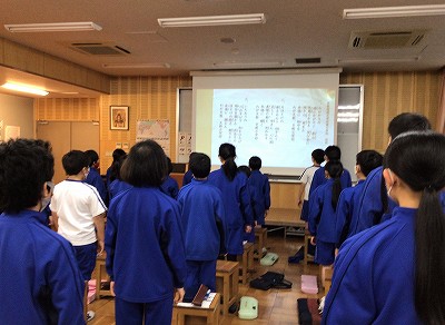 三学期の音楽の時間です。始業式の気持ちで「校歌」を斉唱しました。