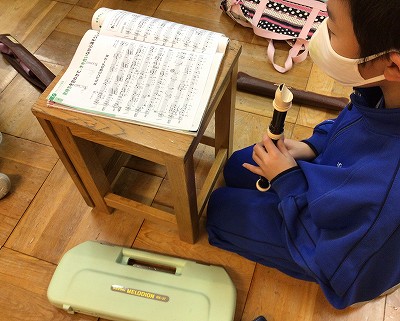 教室に戻って、音出しの時間を過ごしました。「低いミ」と「高いミ」もお手のもの!数回繰り返すと、「なんか、できてきた~」といい感じです。