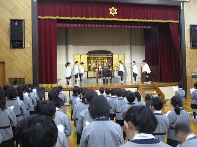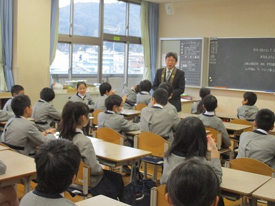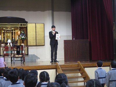 1月の全校目標は「『人としての基本の行いを仕上げよう』(掃除・整理整頓・挨拶・返事・ですますの言葉遣い・決まりを守る・右側歩行)」です。今、心のあり方も学習も仕上げの段階にいることを意識して礼拝に臨みました。
