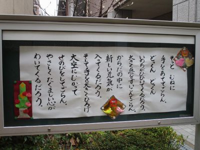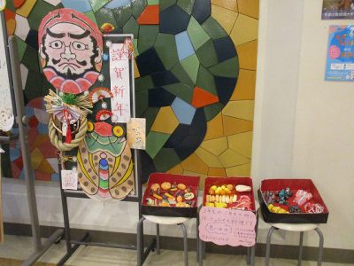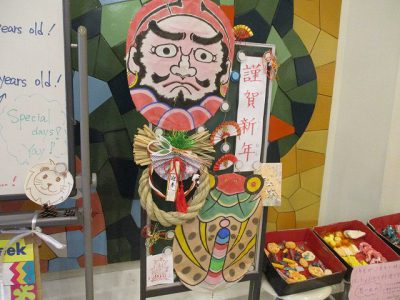 校内では、お正月らしい掲示や絵がありました。