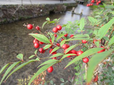 白川沿いの南天の実が、とても鮮やかでした。