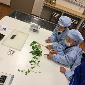 昨日は“七草”の日でした。3学期最初のクラブがグッドタイミング!“春の七草”を手に、お粥作りの始まりです。♪せり・なずな~ごぎょう・はこべら・・・と、1年生の頃に音読した節を想い出して、本物と照合しています。
