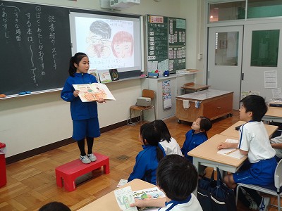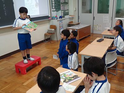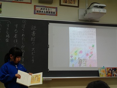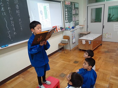 冬休みの課題で取り組んだ『読書紹介年賀状』のスピーチを行いました。