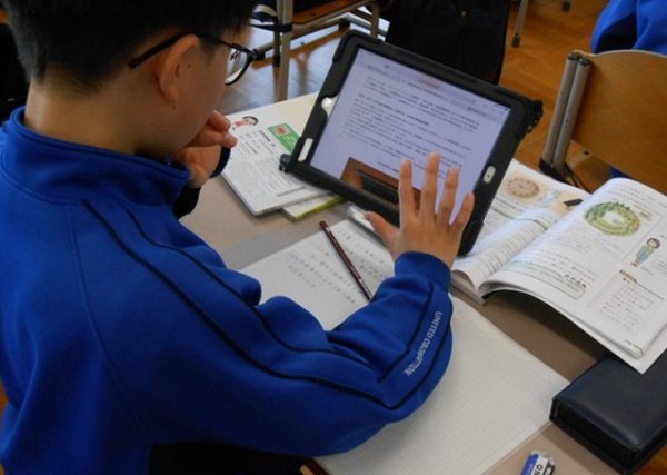 タブレットや資料集を使って「森林資源」を活用するための方法について考えます。