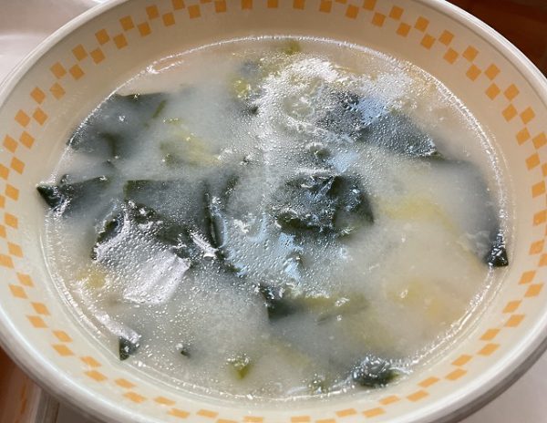 ☆ 「白菜のクリームスープ」は、白菜とほうれん草の緑色が鮮やかなスープになりました。牛乳を加えたスープは後味がまろやかな仕上がりになりました。