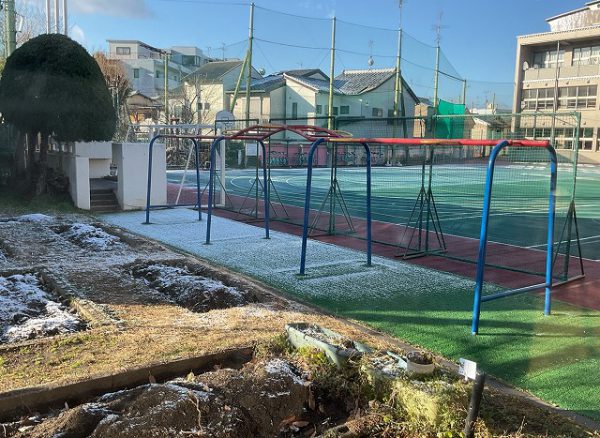 今朝は冷え込みました。花壇では、ほんのり雪化粧が見られました。