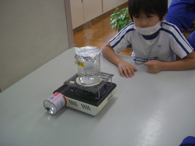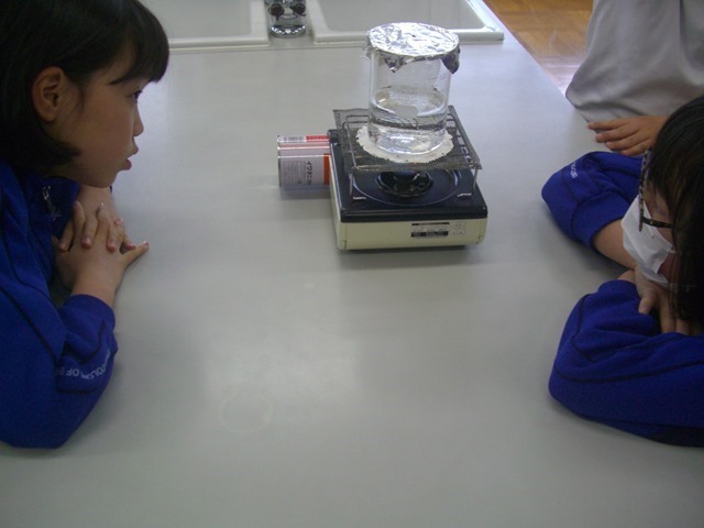 沸騰とは、どのような現象なのか、ビーカーの水を熱して、水の様子を観察しました。