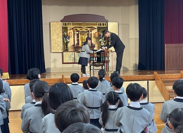 カウントダウンの始まった3学期後半です。皆で「積小為大」を確認し、日々、自分の学びを積んでいこうと気を引き締めました。
