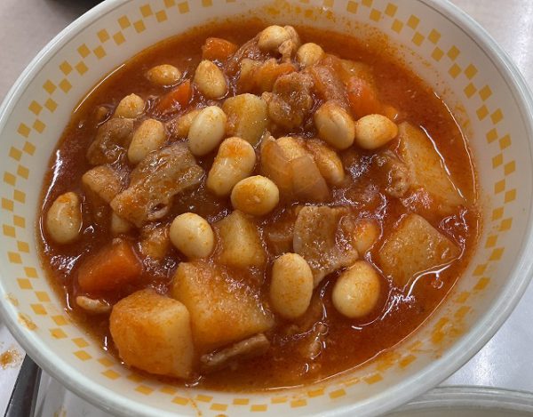 ☆ 「ポークビーンズ」は、じゃがいものホクホクした食感や玉ねぎのやわらかい食感がおいしい料理です。トマトの酸味が効いて甘酸っぱいですが、ご飯によく合いました。