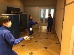 テーブルは3台なので、打ち合いの待ち時間は、“一人打ち”をするという工夫ぶり!