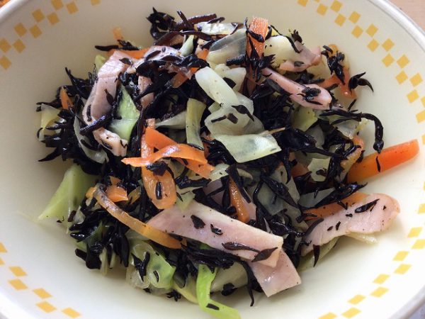 ☆ 「ひじきのサラダ」は下味をつけたひじきと野菜を合わせます。