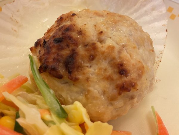 ☆ 「とりひき肉のコンベクション焼き」は、玉ねぎやパン粉を合わせ、しっかりこねてから丸く形を作りました。焦げ目が付くまで焼くと香ばしさが出ておいしく仕上がります。