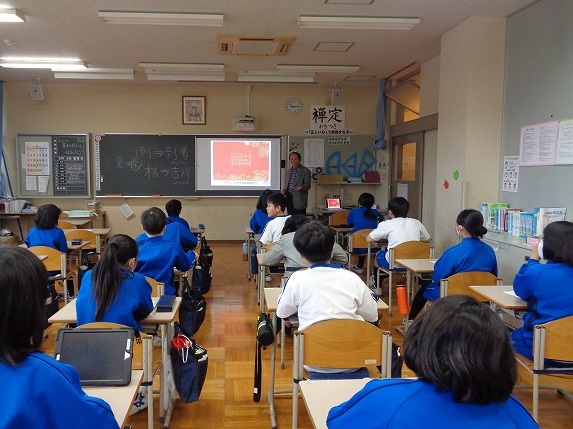 京都文教大学から潘先生をゲストティーチャーに迎え、中国の文化についてたくさんのお話を聞きました。